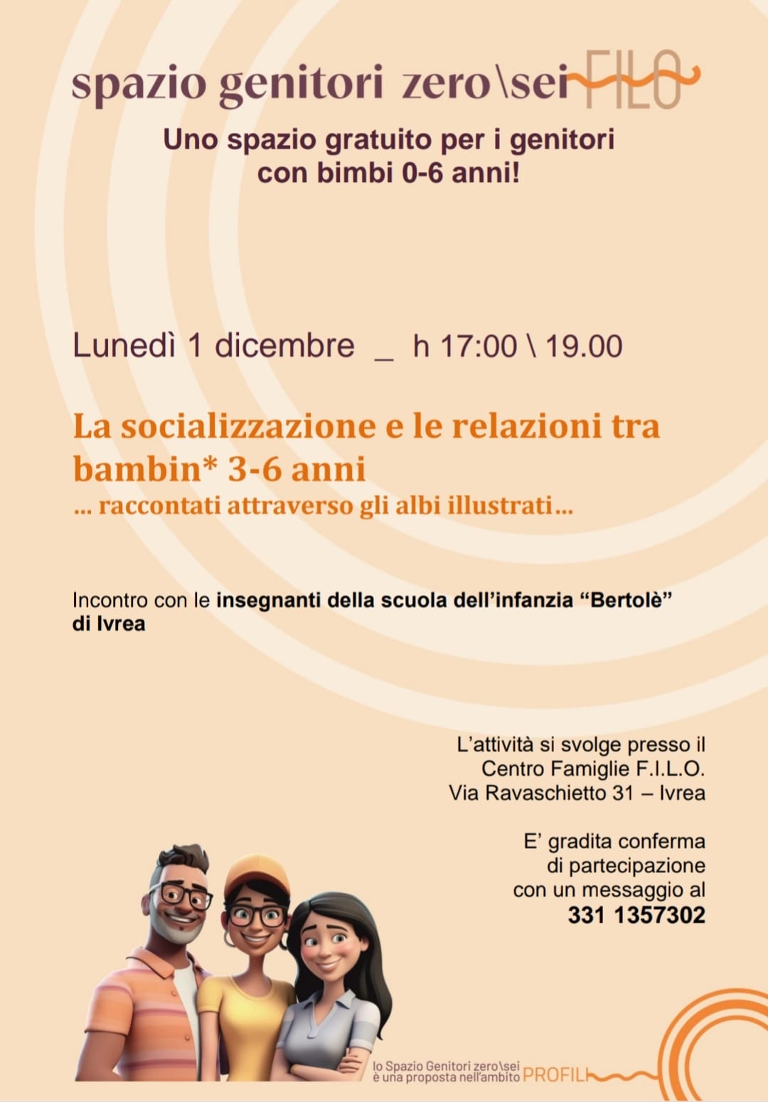 Inoltre, il 1 dicembre vi sarà allo Spazio Genitori 06 un incontro con le insegnanti della Scuola dell'Infanzia "Bertolé" sul tema "La socializzazione e le relazioni tra bambin* 3-6 anni... raccontate attraverso gli albi illustrati".